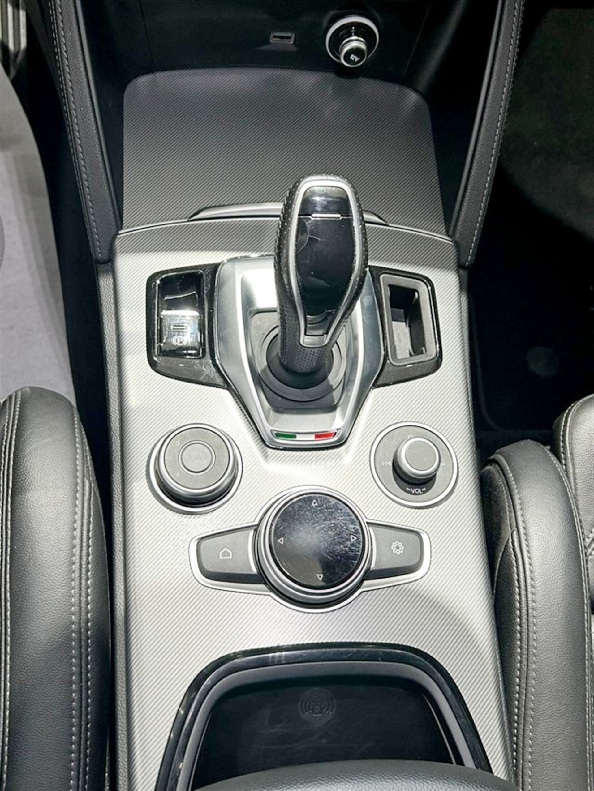 Sedili sportivi in pelle con logo alfa Romeo impresso nei poggiatesta